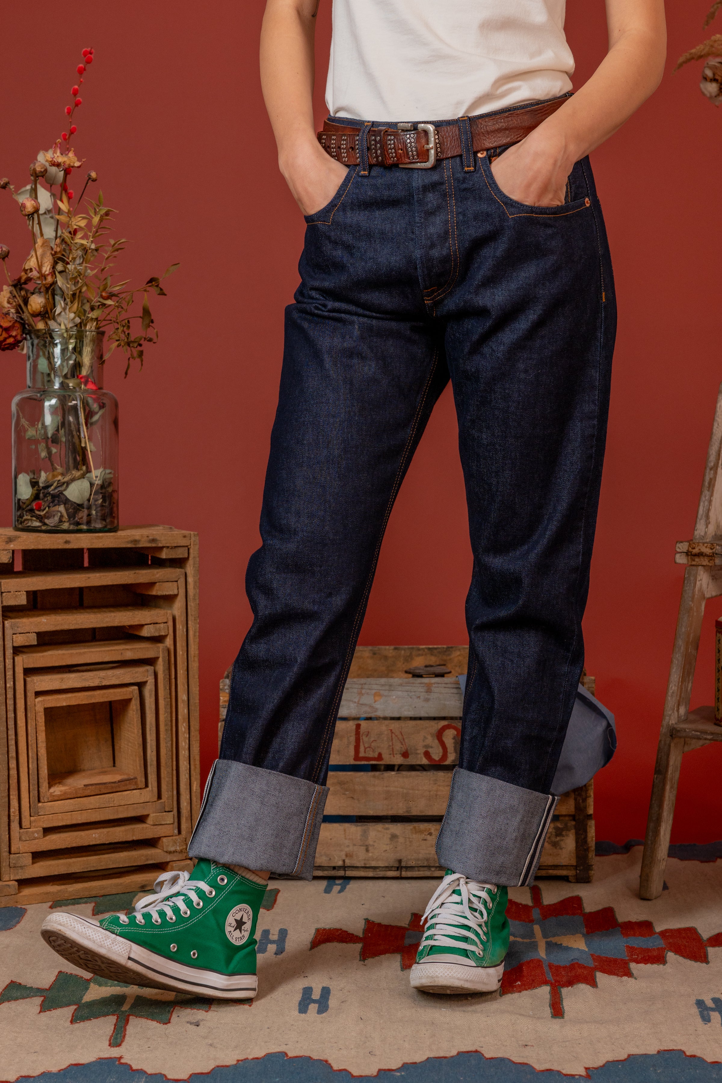 Garments made with Raw Denim are made from untreated and unwashed fabric. This means they will mold to your body over time, developing unique nuances and patterns. Proper care is essential to preserve their quality, color, and character.