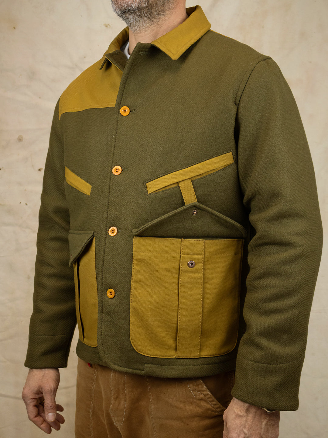 Heavy wool cloth hunting jacket, 80% wool 20% polyamide
