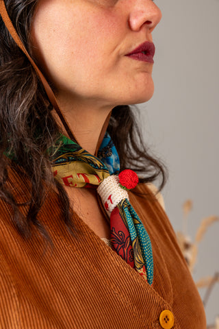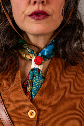 Clip per bandana di Hen’s Teeth con rosa rossa e iniziali "HT". Questo è un accessorio 100% Made in Italy con lavorazione sartoriale.