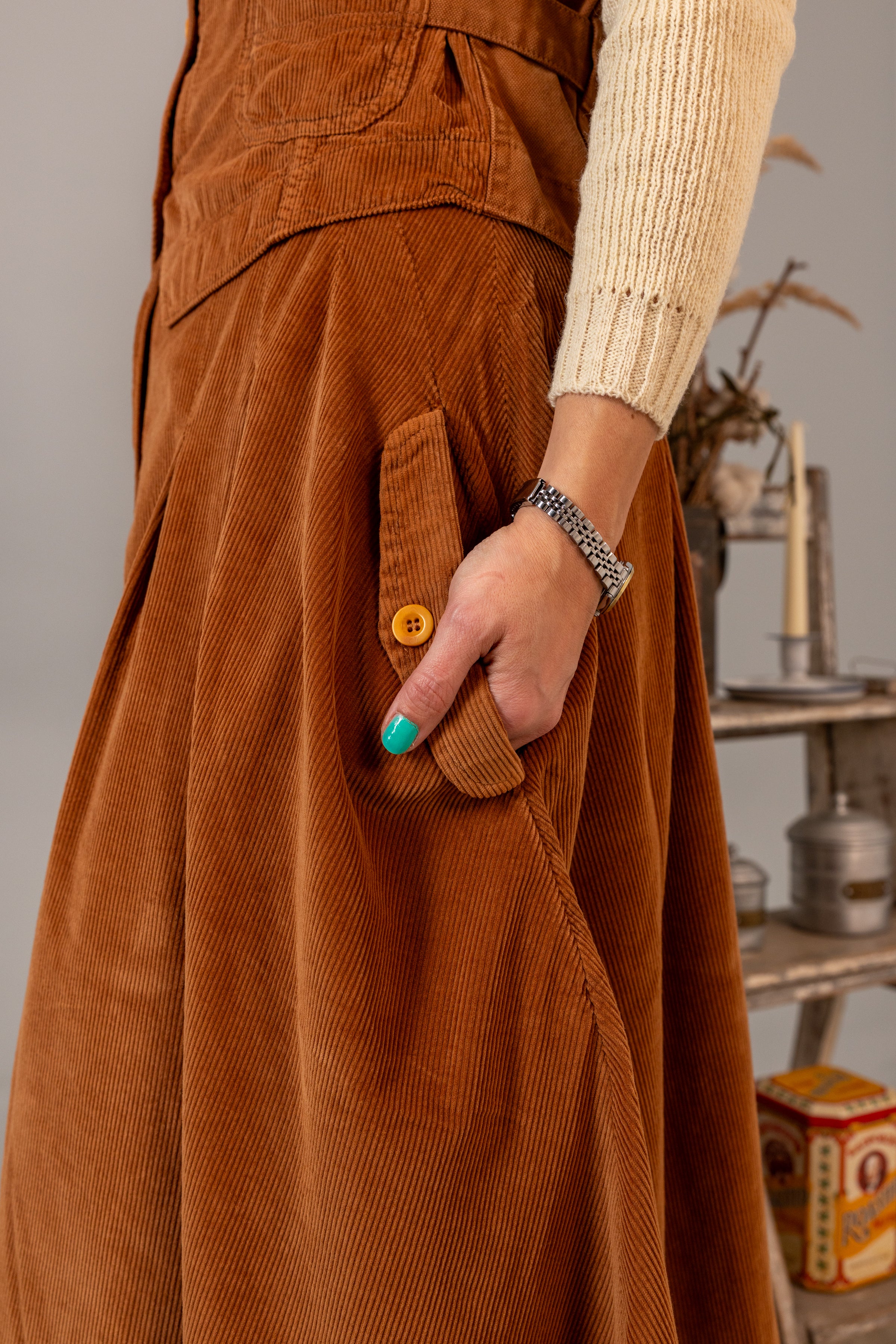 Progettata e realizzata con orgoglio in Italia, la nostra gonna in velluto a coste di cotone è più di una semplice aggiunta al tuo guardaroba: è una dichiarazione di qualità, tradizione e l'inconfondibile tocco dell'artigianalità italiana.