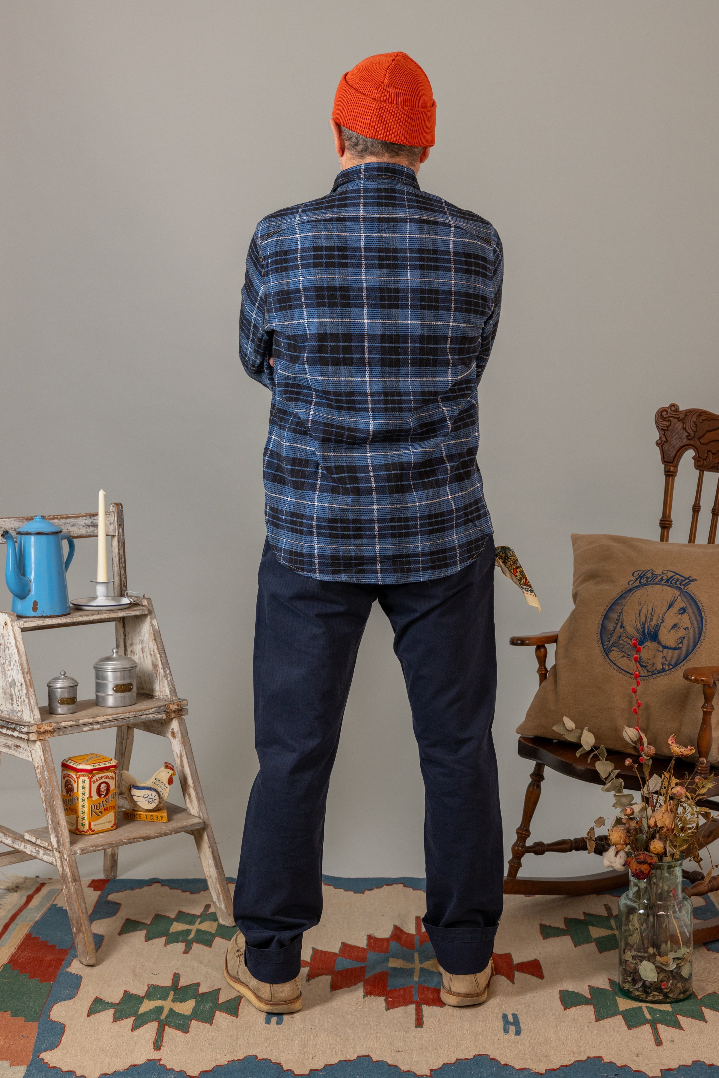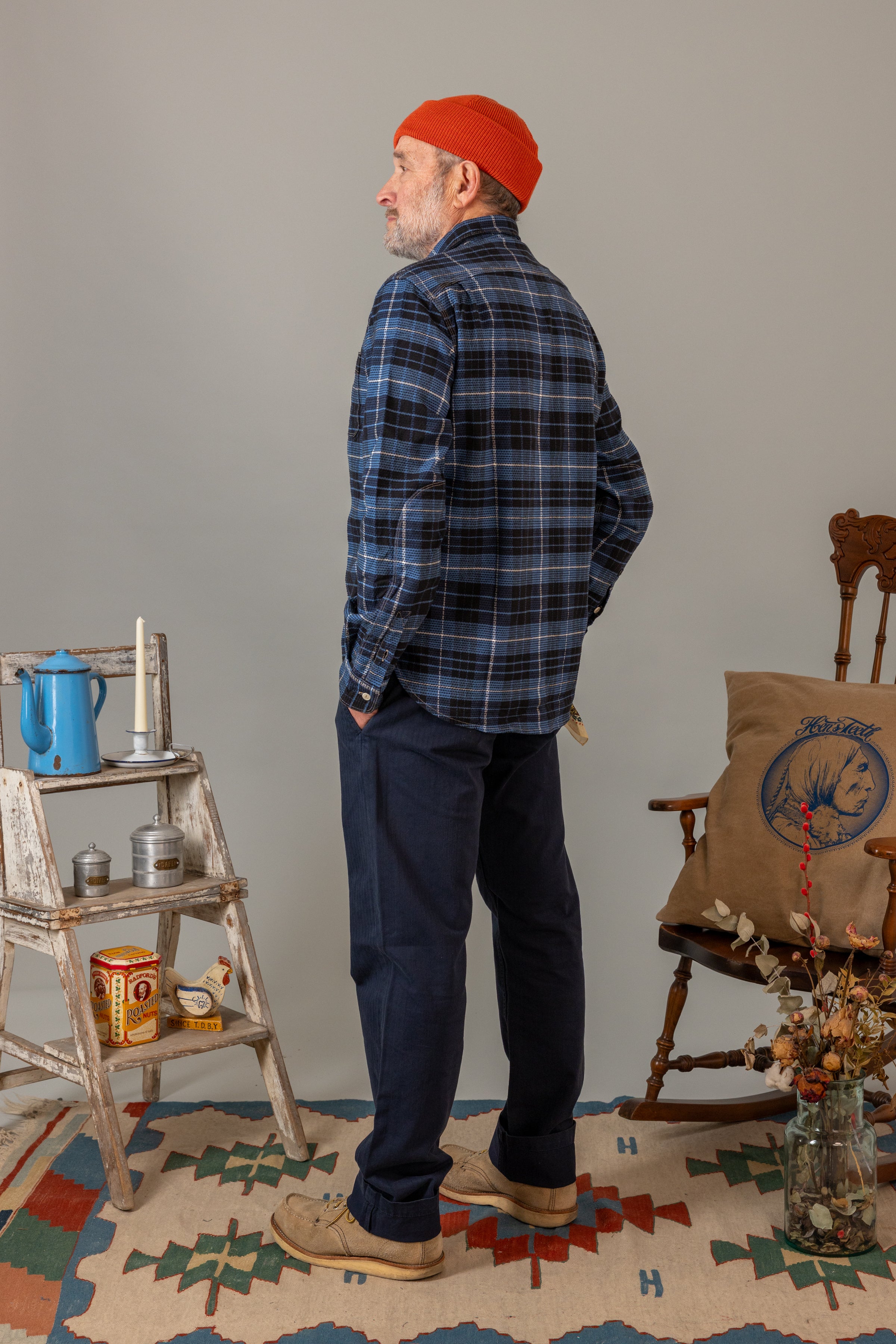 La praticità incontra lo stile con un portapenne sulla tasca, garantendo funzionalità senza compromettere l'estetica. Le cuciture realizzate a mano con la firma Hen's Teeth sulle tasche e i bottoni in vero corozo aggiungono un tocco personalizzato e autenticità al design.