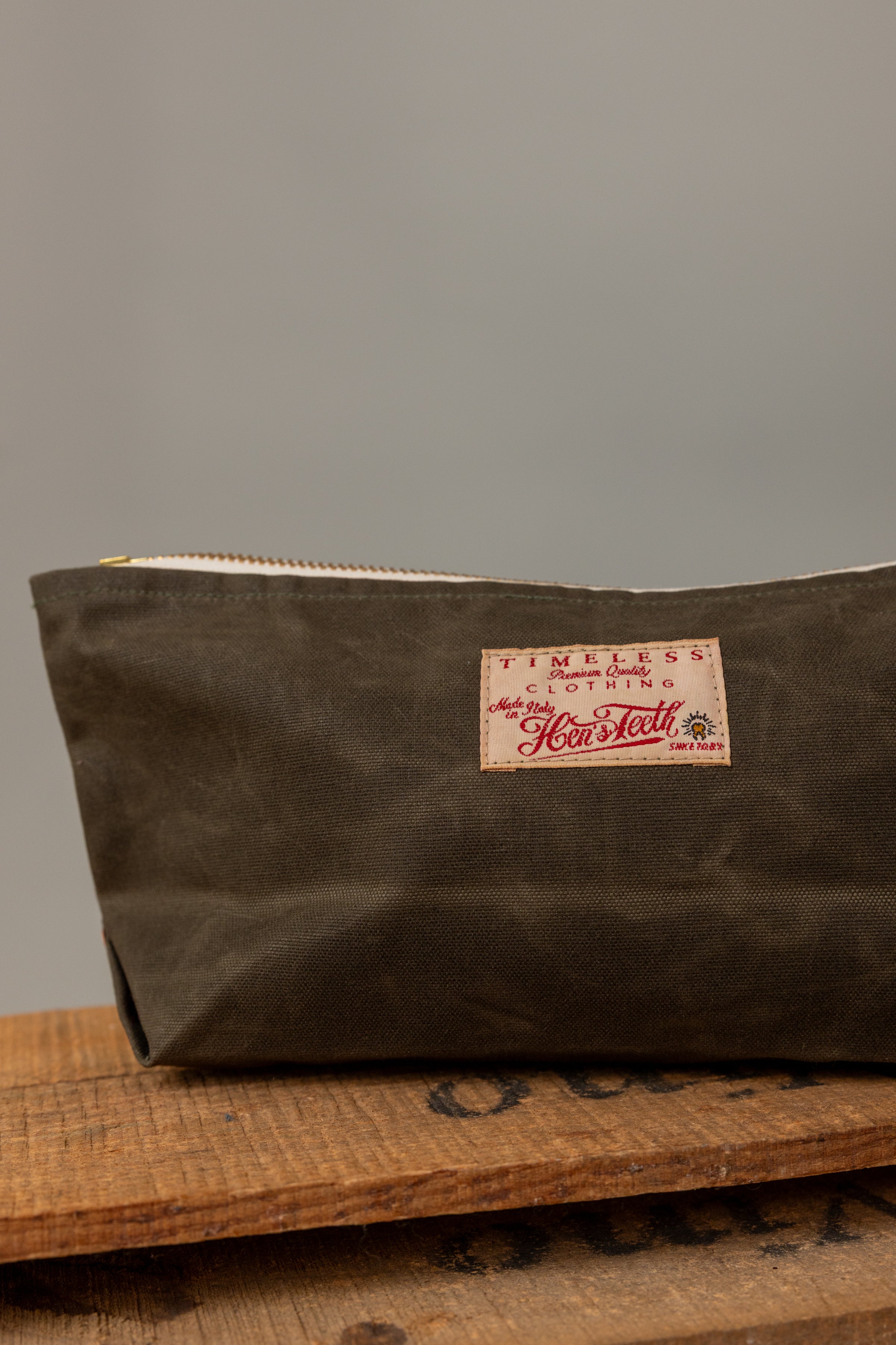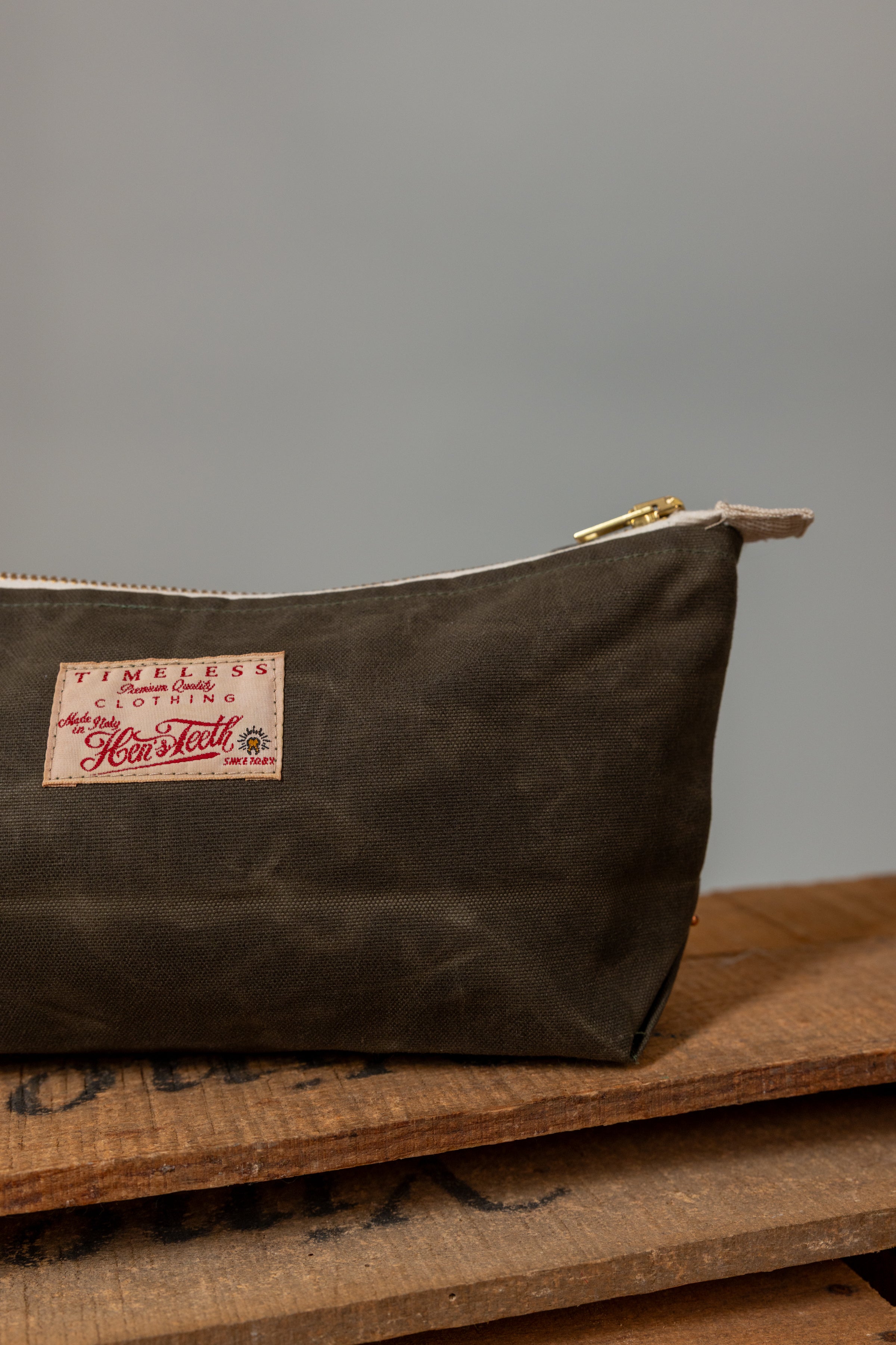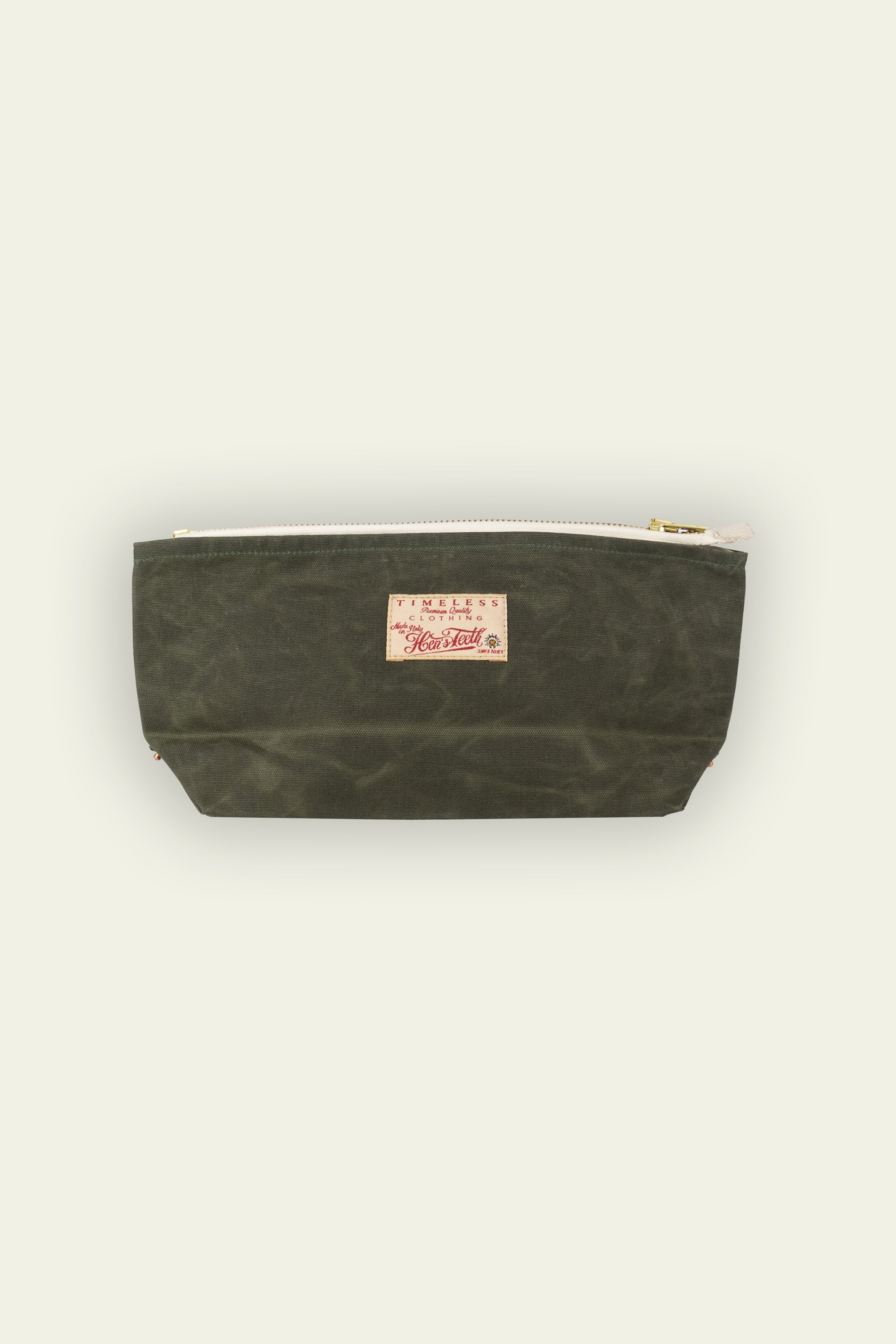 Progettata con rivetti in rame per il rinforzo e un'affidabile chiusura a zip, questa pochette è un accessorio pratico che fonde perfettamente funzionalità e artigianalità italiana.