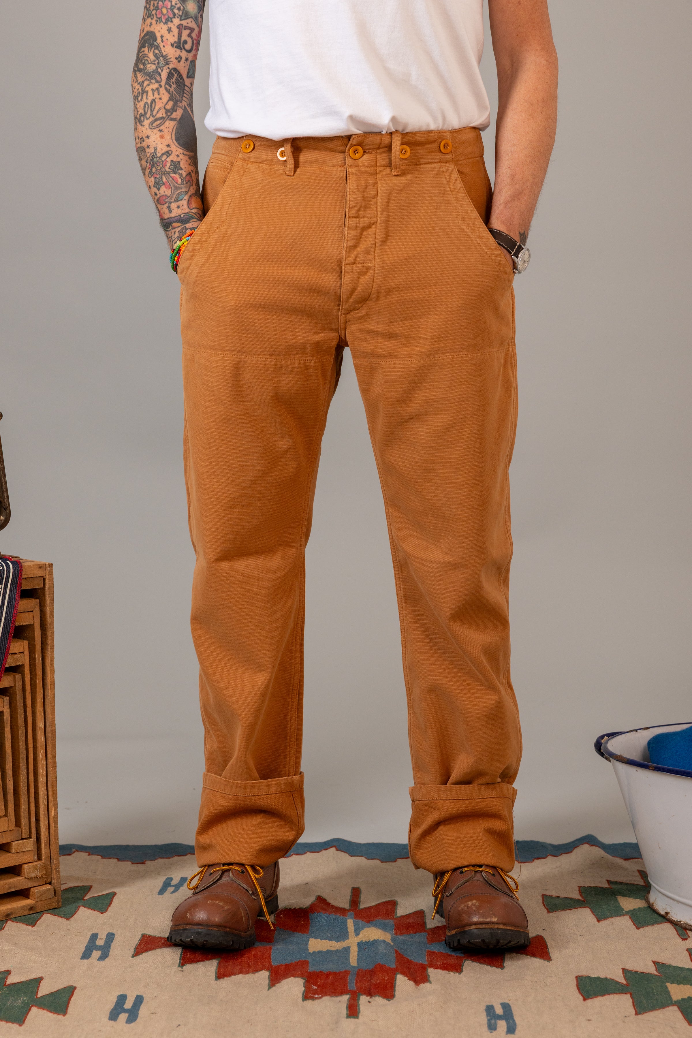 Ispirati alle uniformi dei ferrovieri francesi degli anni '40, questi pantaloni incarnano storia e artigianalità.
