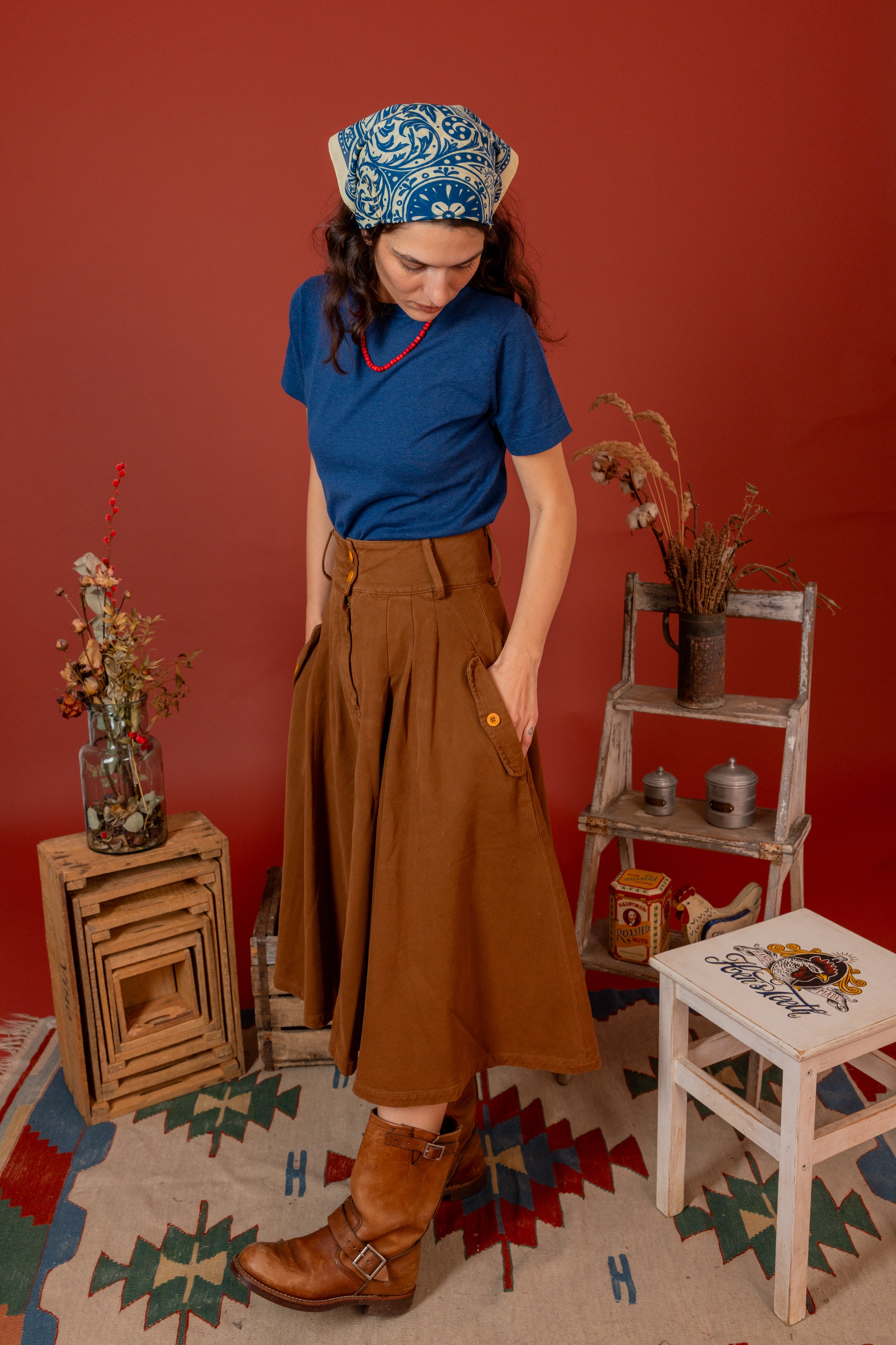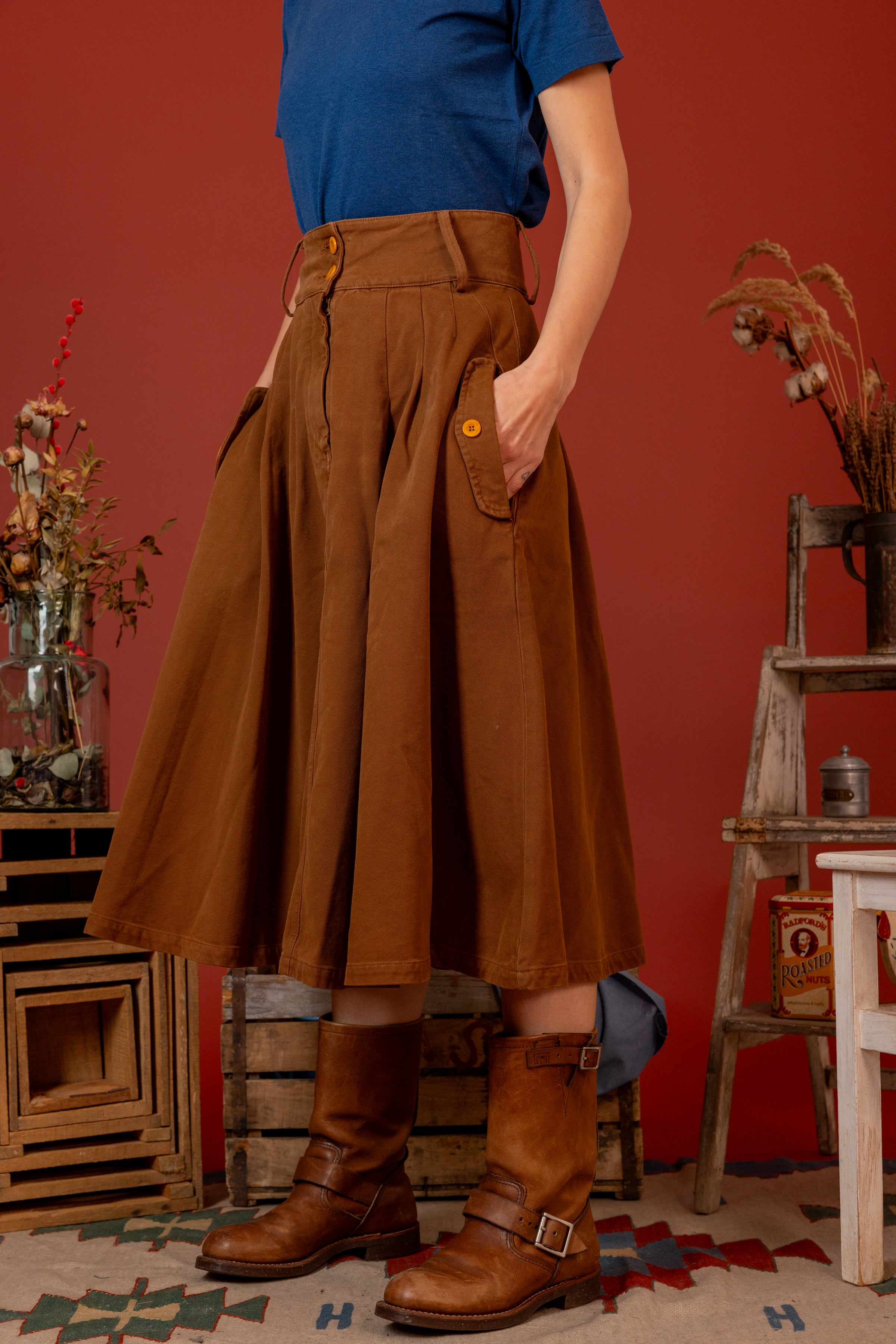 Progettata e realizzata con orgoglio in Italia, la nostra gonna "Work Skirt" è più di una semplice aggiunta al tuo guardaroba: è una dichiarazione di qualità, tradizione e l'inconfondibile tocco dell'artigianalità italiana. Esalta il tuo stile con una gonna che coniuga perfettamente comfort e raffinatezza